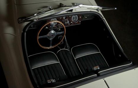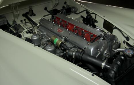 The restoration entailed a total body off strip of the entire car down to the chassis. Everything was completely stripped and the car was restored, piece by piece, each component, from the ground up. The engine and transmission received a total rebuild as did the transmission and all related components including the suspension and brakes. The body work was completed correctly with any minor rust cut out and replaced with metal. Only when the body was completely straight and with perfect gaps was the car then primed and blocked until completely flat. The correct factory color of Cream laid over expert body work. The contrasting interior was finished to its original specification of Black leather with white piping, also completed to a very high standard. The only change to the interior at this time, beyond original, was the addition of a wooden veneer dash fascia and a moto-lita steering wheel, both tasteful and common upgrades. The nicely chromed wire wheels were freshly wrapped with correct style tires, the trunk and engine bay correctly detailed along with a new top and restored side curtains.