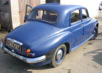 1952 Rover P4 75 in blue for restoration / recommissioning. This example of these lovely cars was on the road 2 or 3 years ago and appaears generally pretty sound and well worth the effort of sorting out. Fitted with the 2103cc six cylinder engine with 4 speed manual geabox. The interior is very nice with the seats looking like they have been recovered at some point in the past. The headlining is also very good still and the dash is in very good order. It will need front carpets. The car otherwise looks complete with the rear overriders in the boot. We will update with more details once we have had a chance to have a proper assessment. Please telephone for futher details or e-mail for more pictures