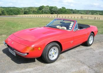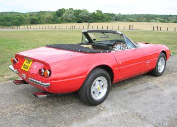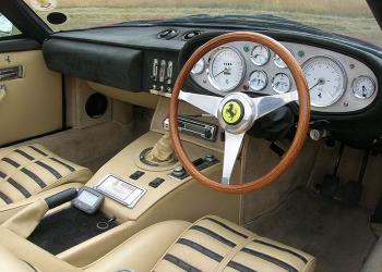 This factory built car is finished in Rosso red with correct black & tan leather upholstery. Instrumentation is correct with sliders for heating controls. Alcantara dashboard top. The engine fitted is Jaguar's V12 5.3 litre unit with manual 5 speed gearbox. In built fire extinguisher system. Everything has been badged as Ferrari including the dust caps! 15" Ferrari style alloys with Pirelli P600 tyres. Power steering. Electric windows, woodrim steering wheel. Quad exhaust tail pipes. Many original Ferrari parts fitted.