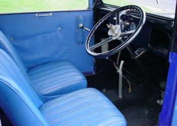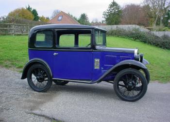 1931 Austin Seven Saloon in Blue & Black with Blue Leather Interior.