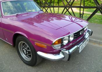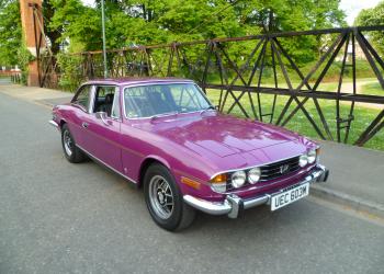 TRIUMPH STAG 1974. Magenta with black interior, alloy wheels. Hard and soft-tops. Manual gearbox. This absolutely fabulous example has covered just 18,000 miles, fully documented from new. The condition can only be thought of as superb throughout.
