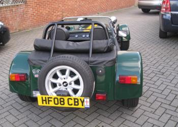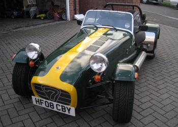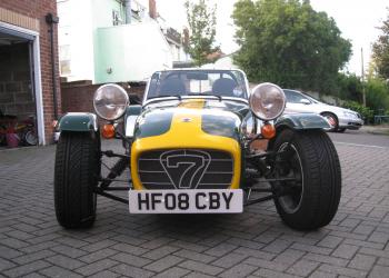 2008 Caterham 7 - Roadsport spec Excellent condition inside and out. 4750 miles 08 Registration British Racing Green with yellow nose and stripe 1.6 K series engine - 120bhp. 5 speed gearbox De Dion set up All weather gear included (hood / heater / heated screen) Leather seats 14in Alloys & Avon tyres in excellent condition Immobiliser Momo quick release steering wheel Start Button Spare wheel & carrier