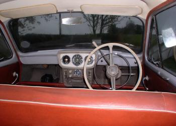 HILLMAN MINX Mk II Early car running well in seemingly sound condition with less common light and dark grey paintwork and contrasting red leather interior. Very pleasant drive to drive with 1390 cc engine and column mounted gear-change – ready to use and enjoy.