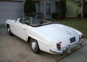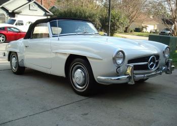 This is 1961 Mercedes Benz 190SL convertible two door grand touring was produced between May 1955 and February 1963. The car with a white exterior color and beige leather interior, The car have only a soft top available. The car shows its true form, and a perfect car for 190 SL that a solid roadworthy in good condition.The car is looks excellent and will make a great driver,This is for an enthusiast who is looking for a solid car.