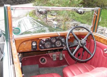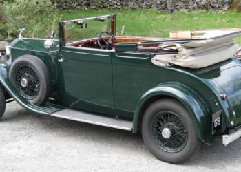 Described by Hooper as a ‘Four seater coupe cabriolet’. Some may call it a two door drophead, but whatever terminology is used, it is an unusual, desirable and very useable car, in good condition throughout, nicely finished in green, with excellent red leather interior. The already attractive design is enhanced by twin side-mounted spare wheels and a lovely set of lamps, including P80 bullseye headlights and a PLG40 centre spot. The car benefited from a new cylinder head a few years ago, and is fitted with overdrive, which is a very worthwhile upgrade. It runs well, and comes with a bundle of history. Enjoyed for thirteen years by the last owner, who bought the car from us in 1999, and well cared for during this time.