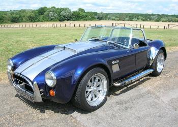 Blisteringly quick ! Fitted with a Chevy 350 ci. V8 engine with Edelbrock ` Performer ` Pack, circa 420 BHP ! Holley carb. Recent new Tremec 5 speed gearbox. Edelbrock engine dress and ally engine bay. Dax alloy water tank with braided hoses, chrome alternator etc. 4 into 1 chrome pipes. Finished in pearlescent ` Montreal `blue metallic with ` Le-mans ` silver stripes. Full black leather interior. Stewart Warner instruments, black carpets, 12,000 rec. miles. Remote alarm, Full width chrome roll bar, Motolita wood-rim steering wheel. Willans harness belts. Full weather gear in black Mohair including tonneau cover. Heater. 17" split-rim Halibrand replica wheels with Dunlop Sport tyres. Sun visors & wind deflectors. Hydraulic bonnet & boot struts. All brightwork including bumpers and stone guards etc. Dax number plate. Fantastic car!