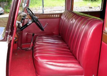 A very sound, sharp and smart example, handsome in design, with an unusual rear window, almost crescent moon' in design, very nicely finished in a lovely shade of deep maroon, with cream flanks and wheel discs, with red interior, including the headlining, all in very good condition. The paint is excellent, as is the chrome work and cosmetics generally, looking particularly attractive with correct Lucas R100 headlamps, centre spot-lamp and long trumpet horns, with Ace Cornercroft side-lamps, all of which contribute to the car's impressive frontal appearance. In recent times, the car has very much benefitted from overhaul of gearbox and rear axle, new tyres, new stainless steel exhaust system, and more besides. The engine is running very nicely and quietly, the car drives well and is in very good order throughout. MoT tested until June 2018