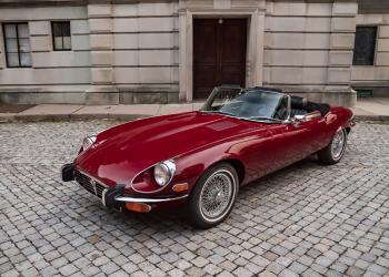 The example on offer here, a 1973 Jaguar E-Type Roadster, Chassis # UD1S21679 per its JDHT Certificate, shows that it was completed December 29th 1972 and was dispatched to British Leyland of New York February 20th 1973. Originally finished as it presents today in Regency Red with Black interior. Anderson Foreign Motors of Woburn, MA originally delivered the car to a Mrs. Linda E. Hogan of Malden, MA on May 24th, 1973. As the story goes the car was cherished, used sparingly and extremely well kept never seeing use in poor weather. Over the years it became accustomed to more storage than use and by the late 1980's early 1990's the car had not seen use in some time. In 1996 the second and current custodian acquired the car from Mrs. Hogan. The mileage at this time was reported to be not much more than approximately 12,600 miles with the car remaining in superb original condition.