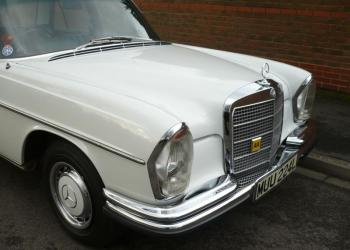 MERCEDES 280SE 1971: Special order when new in Off-White with navy blue interior. Automatic / P.A.S. Air conditioning. Tinted glass. Supplied new in Saigon, it came to the UK with its original owner in 1973 and has been in his ownership until our recent acquisition. 35,000 miles only from new. A beautiful original example.