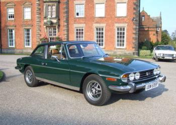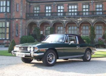1976 Triumph Stag auto in British racing green with black mohair soft top, BRG hard top and tan interior.